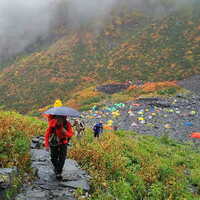 小梨平の朝、起きるとガスガスで真っ白、いつ降り出してもおかしくない中・・・涸沢に向けて行くのみです