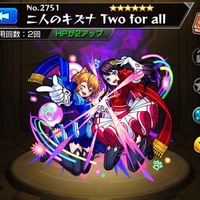 4月25日のモンストニュースで、Two for all獣神化が発表されました! なんと発表当日の19時より実装されます! 早速獣神化させて神殿へ突撃してみました! Two for all ボックス内を探したらいましたよ! ただ、使用回数は二回w マルチガチャか何かでゲットしたような記憶が。 今回の獣神化で強化されたので重宝することに…
