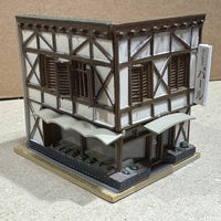 某模型店で¥550で売っていたので購入してみました。 喫茶店イギリスや北欧によくみられるハーフティンバーと呼ばれる構造で、柱・梁・筋交いなどの骨組みと白壁の対比が特徴です。 第3弾「横丁編」の色替リニューアル品。各建物の配色などを変更しフィギュア2体を新たに添付。 【製品名】街並みコレクションR 第3弾 横丁編…