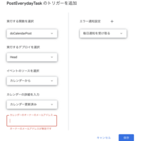 はじめに 昨日はics からNotion に一括登録する記事を書きました。また、今朝は繰り返しイベントの登録を実施しました。3 本目は Calendar イベント登録時に Notion タスクページを自動登録します。繰り返しイベントでは、時間手動型のイベントを使いましたが、今回はカレンダー更新をトリガーにして、Notion API に送りま…