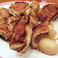 (承前) 来たーーーーー! と、思わず大フォントで叫びたいぐらい、嬉しかった。 待望の焼餃子登場だ。焼き加減は完璧。カリカリ感ともちもち感のバランスも絶妙。そして何より特筆すべきなのは…。 ニンニクが丸ごと入っている!ことだった。 ニンニク丸ごと入り餃子については、初めての経験ではない。以前、高田馬場の…