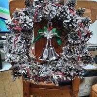 クリスマスリースを仕上げる