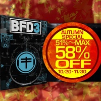 こちらのイベント・キャンペーンは終了しました。 アコースティック・ドラム音源のベストセラー「FXpansion BFD3」が51〜58%OFFとなる「BFD3 Autumn Special!」キャンペーンを開催します。拡張音源もますます充実