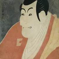 寛政6年(1794)の5月に河原崎座で上演された「恋女房染分手綱」の一場面で、前半の山場・道成寺の主役である能師役の竹村定之進を描いたもの。演ずる市川鰕蔵は5世市川団十郎のことで、当代随一の名優と謳われた。大ぶりの体格、彫りの深い顔と顔全体を使った豊かな表情が、この役者がもつ堂々たる風格を伝えてくれる。ま…