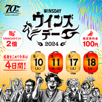今年はJRA70周年。皆様のご愛顧に感謝を込めてウインズ・デーを4日間開催いたします!昨年よりも賞品数やイベント内容がパワーアップ!ぜひお近くのウインズにお越しください。