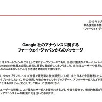 ファーウェイ・ジャパンは、20日にGoogleから発表されたコメントを受けて、声明を発表した。