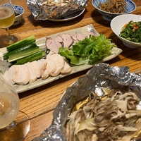 【おうち居酒屋 炊飯器でほったらかし豚ももと鶏むねハム 舞茸たっぷり鮭のホイル焼き ツナピーマン】