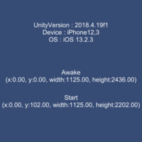 この記事でのバージョン Unity 2018.4.19f1 Unity 2019.3.0f6 はじめに iOS(Androidも?)端末にはiPhoneXのノッチなどを含まないセーフエリアという範囲があります。 そして、Unityではセーフエリアの位置やサイズをScreen.safeAreaで取得する事が可能ですが、 このsafeAreaの値がAwakeとStartで違う場合があるというのが…