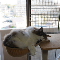 なんだか急に暖かくなって春めいてきましたよ。Oちゃんは昼前からハンモックでぐーすかぴー。 この時期までハンモックに入っているのは珍しいのです。いつもの年だと、春先から次の冬まではハンモックには全く入らなくなります。不思議ですね。 ふにゃにゃー 大あくびですね。春眠暁を覚えず、じっと手を見る。うにゃうに…