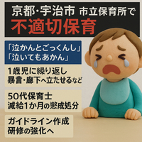 京都府宇治市の市立保育所で1歳児への暴言や隔離などの不適切保育が発覚。市は50代保育士を減給処分とし、ガイドライン策定へ。 京都の保育所で不適切保育 広告の下に記事の続きがあります。ペコリ 京都府宇治市の市立保育所で、1歳児を担当していた50代の保育士が複数の園児に対して心理的虐待を含む不適切な保育を繰り返…