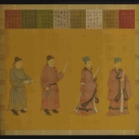 (右から)張華・杜預・虞 世南・李勣 賢聖障子は、天子を支える名臣の図で、母屋と北廂《きたびさし》の間に立てられ、中央に天子を象徴する霊獣である獅子・狛犬と負文亀《ふぶんき》(神亀文を負って出現した瑞祥を表すという亀)が、その左右東西に中国の殷から唐時代にかけての賢人、呂尚《りょしょう》(太公望...