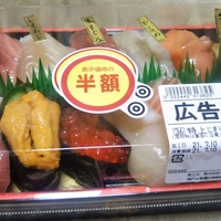 今週のお題「寿司」 どうも!LSSです!! 今日、スーパーに買い物に行った折、こんなのを見つけました。 1280円が640円! ただしスーパーのお寿司。 果たしてこれは高いのか安いのか??w 晩御飯たべた後でしたが…買って帰りました^^ お寿司はデザートです!w ってなとこで、はなはだ簡単ですが今回はこのへんで! 次回…