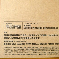 良品計画(7453) 『無印良品』で衣服、生活雑貨、食品を展開。半数超が中国ほか海外店舗。足元は国内出店に注力 ~会社四季報より~ 中間配当金計算書とともに株主優待カードが届いた。 今回から導入された株主優待制度。 店舗の友人レジで提示すると5%offになる。一部除外品がある。 有効期限は11月24日から5月6日の約…