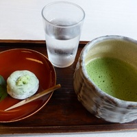 お休み処 清め茶屋 熱田神宮の中にある休憩所。 熱田神宮参拝、宝物館鑑賞後にこちらで休憩。 甘味がいろいろ~。 暑いのでソフトクリーム・かき氷を召し上がっているヒト多数。 わらび餅は売り切れ。残念~。 先に食券を買って席に。 抹茶・生菓子 550円 生菓子はほんのり草餅の味わいで中にこしあん。 きよめ餅と同じよ…