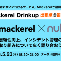 こんにちは。Mackerelプロデューサーの id:wtatsuru です。5月23日(木)に、Mackerel Drink Up 出張版@福岡を株式会社ヌーラボ様との共催で開催します。Mackerel としては初めての福岡でのイベント開催となります。 Mackerel Drink Up 出張版@福岡 (共催:株式会社ヌーラボ) のご案内 Mackerel は「開発者に会いに行け…
