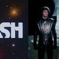 宇宙空間を映し出すスクリーン。その上方から巨大な宇宙戦艦がゴゴゴゴゴ…とフレームイン…したと思ったら、あっという間に最後尾のエンジンノズルが…って短過ぎるだろ! 真似るならちゃんと真似ようよ(笑)。 「スタークラッシュ」 (1978年/ルイス・コーツ監督) 77年を席巻した「スターウォーズ」の狂騒に間髪入れず便…