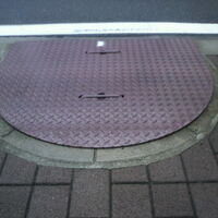 これ、見つけた時、ちょっと衝撃でした。 横浜市・丸⑯(2022.10) いささか分かりにくい写真ですが、楕円形を半分に切ったような形をしているのです。 よって、「横浜市・丸」という分類名は変ですが、少なくとも四角ではないし、今後このような形のものが出てくる可能性は低いので、丸ということにします。 manhole cover i…