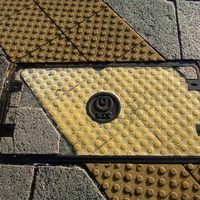 横浜市・NTT⑩(2025.1) 「横浜市・NTT⑥」と似ていますが、右下の鍵穴部分が違います。 周囲の舗装に擬態していますが、点字ブロックの色の違いでバレています(?)。 横浜市・市章㉓-2(2025.1) ご紹介済みのデザインですが、周囲の舗装への擬態が完璧……なようでいて、微妙におかしいので、やはりバレていますね。 manhole co…