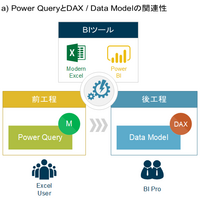 本ブログのメインコンテンツの1つは「Power Queryについて」の記事にて図説したDAX / Data Model(データモデル)です。念のため、もう一度画像をアップロードしておきますが、見てお分かりの通り、データの加工を担当するPower Queryを前工程とするならば、DAX / Data ModelはBIツールを使ってデータ分析を可能にする後工…