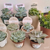 今年最初の仲間入り多肉の紹介です。 全て100円(値下げ商品)でお得感たっぷりです。 では、 ひとつずつ紹介! レディジア このテカテカがどんなふうに変化していくのか楽しみです。 ムーンフェアリー 今のところ見た目はいまいちですが、綺麗になるまで気長に待ちます。 風緑 徒長していますが頭の方は形が整っています…