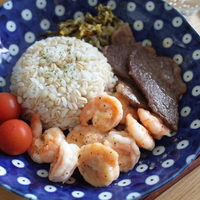 目指せハワイの味!ガーリックシュリンプと焼肉のプレート