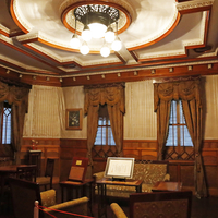 写真は大正7年に建てられた「山本家住宅」の応接室です。 応接セットなどのインテリアはもちろん、床、天井、壁すべてに希少な建材が惜しみなく使われ、精緻な細工が施されています。 圧倒的な財力を誇る富豪が湯水のようにお金を使ったらこうなった...といった感じの応接室。明治・大正期の景気の高波はすごかったという…