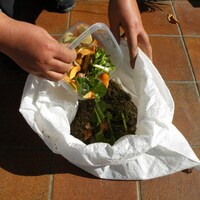 ホームセンターで買える土のう袋。そして身の回りの土とぬか。たったこれだけで家庭から出る生ごみを堆肥にすることが…
