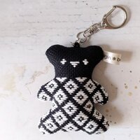 2,000円 | minneのブラックフライデー企画参加バッグの中の小さな友達。ゆるくかわいい不思議なキャラクター。こぎん刺しの伝統模様の洋服を着たみたいな、くま型のマスコットキーホルダー。■プロフィールなまえ「こなゆき」性格「繊細」こぎん模様「花この連続」花こと呼ばれる小さな...
