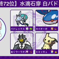 こんにちは、みずもです!S35にて最終2桁を取ることができたので構築記事を書きました。ぜひ最後まで読んでいただけると嬉しいです。 結果と使用構築 構築経緯 個別紹介 白バドレックス カイオーガ ブリジュラス 水ウーラオス ミミッキュ 原種ガチグマ 選出 最後に 結果と使用構築 ①シーズン35 TNしもつかれ 最終72位 (52…