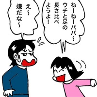 いつも訪問ありがとうございます ウチの娘達は、しょっ中僕と足の長さを比べてきます… 僕は胴長短足の典型的な日本人体型… 僕より背の低い、妻のユリや長女のリナの方が足が長いのです… でもさすがに10歳、125センチの次女リンには負けません。 ほら! まだ、5〜6センチは勝っている! でもね… だから比べたくないんだよ〜…