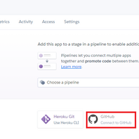 ランキング参加中プログラミング[57]本番環境の構築 | コンパイル[ホームに戻る] >> [59]本番環境の構築 | Herokuデータベースへの接続 Herokuのページで「Deploy」の「Deployment method」欄にある「Connect to GitHub」をクリックします。Connect To GitHub 下に出た「Connect to GitHub」ボタンをクリックします。C…