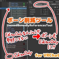 ★話題の AvatarOptimizer https://vpm.anatawa12.com/avatar-optimizer/ja/ に同内容が統合されました。AvatarOptimizer使ってる人は「UnusedBonesByReferencesTool」を付けると同様の効果が見込めます。 EditorOnlyなメッシュからしか参照がないボーンをEditorOnlyにするツールです。 (EditorOnlyではないメッシュからの…