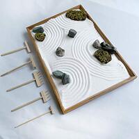 下記の店で白砂と砂かき棒を買った・・ 本格的枯山水庭園が作って飾って楽しめる【枯山水キット<禅> Zen master kit】 みどり屋 和草(Midoriyanicogusa) Amazon 木枠はあるものを利用する・・ 石もあったし、木のオブジェも鶴亀もある(サイズ違う?)・・ ミニチュア民家と石付きの苔玉、グリーン・・ 【枯山水<玉砂利…