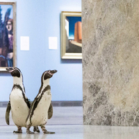 ペンギンたちが美術館へ COVID-19のため休館中のネルソン・アトキンス美術館に、カンザスシティ動物園から3羽のペンギンたちのプライベート・ツアーが行われました。