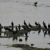 先週は国頭村の他に糸満市の某海岸にも行ってきました。 早朝の海岸は中々に賑やかで潮目も満潮で 野鳥たちが比較的 砂浜近くに居てくれたので探しやすかった。 この日一番目立っていたのはカワウの群れ。 カワウ(糸満市2025年1月13日) カワウにしては小規模な50羽ほどの群れでしたが存在感は抜群。 アオアシシギも通常…