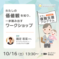 育児休業中・復職をお考えの皆さまへ キャリアカウンセラーと復職に向けた準備をしませんか? 9月12日(土)10:00~11:30 ことはた・ママの復職支援プログラム キックオフセミナー 〜安心して復職するために〜 仕事復帰までに何をする!?経験者と話をしてみよう 参加費・無料