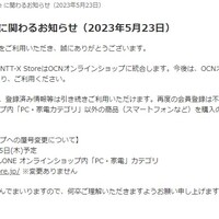 NTT-X Storeは23日、2023年6月15日にOCNオンラインショップに統合されると発表した。OCNオンラインショップ内の「PC・家電」カテゴリより利用する形となる。