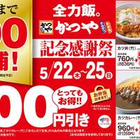 【おかげさまで国内500店舗】とんかつ専門店「かつや」で4品どれでも200円引き!とってもお得な4日間