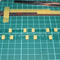 GREENMAX(松本商事販売)の阪急8000系箕面線仕様(8040F+8041F)の内装装飾②です。 ガラスパーツの戸袋にレールクラフト阿波座から販売されている、化粧板木目調ステッカー貼り付けました。 化粧板木目調ステッカー縦8㎜×横5㎜の大きさにカットしたものを貼り付けました。 8041Fはガラスパーツにグリーンのフィルムを貼り付け…