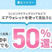 期間中にエントリーした上で、ローソンやミニストップ、無印良品、ダイコクドラッグ、キャンドゥ等のエアウォレットが使える店舗でエアウォレットアプリで支払いをすると、50%が還元されます。