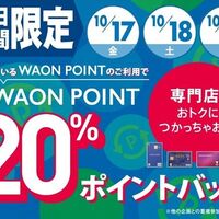 10/17~10/19まで!イオン専門店のWAON POINT加盟店でWAON POINTを利用すると20%還元!