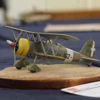 さて完成した CR42ファルコの展示を眺めては実機のウンチク話を同好の士と交わす。あるいは家に帰ってイタリアンワイン(ホントは水割りブラックニッカ)を舐めながらこの機の生い立ちについて思いを馳せてみる。こういうのが大戦機模型の醍醐味だったりする。 展示会でのショット フィアットCR42ファルコ、といえばWebで調…