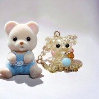シルバニアファミリーの赤ちゃんクマをモチーフにした、アマゾナイトとシトリンのビーズアクセサリー | ビーズと天然石のちこ工房 powered by BASE