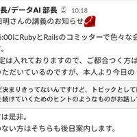 2022年4月から新卒エンジニアとして入社しました daichi ( id:da1chi24 )です。 先日社内でRubyとRailsのコミッターである松田明さんによる特別講義が開催されました。 開催の経緯や感想、当日出た質問を紹介します。 開催の経緯 2022年の新卒研修では、研修内容に関連した話題について自身で調べた内容を発表する機会があ…
