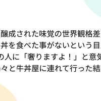 【醸成された味覚の世界観格差】牛丼を食べた事がないという目上の人に「奢りますよ!」と意気揚々と牛丼屋に連れて行った結果