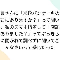 さっき無印○品で店員さんに「米粉パンケーキの粉どこにありますか?」って聞いたら、私の手に持ってるスマホ指差して「店舗在庫ありました?」ってぶっきらぼうに聞かれて調べずに聞いてごめんなさいって感じだった ところで、無印◯品の米粉パンケーキの粉のおすすめ点を伺いたいです 厚みが出てもちもちふわふわ美味しい…