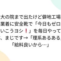 京大の院まで出たけど僻地工場で作業着に安全靴で「今日もゼロ災でいこうヨシ❗️」を毎日やってます、まじです→「理系あるある」「給料良いから…」