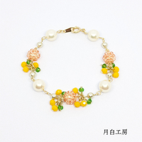 ビーズボール&シルキーパール【ミモザ】ブレスレットと128面カット水晶とアメジストのピアスを出品しました