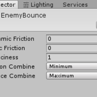 動かしたいオブジェクトに、Physics Materialをアタッチする。 以下スクリプトをアタッチする。 // 移動速度 public float speed = 5.0f; // Rigidbodyコンポーネント Rigidbody rb; // Use this for initialization void Start () { // Rigidbodyコンポーネント取得 rb = GetComponent<Rigidbody>(); //右上にボールを動かす rb.AddF</rigidbody>…