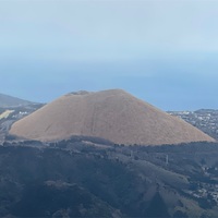 今回は伊豆半島にある大室山のお話です 火山に行くと小さな穴がいっぱいあいた 石ころが沢山落ちています… マグマに含まれる水などが 噴出後に減圧発泡して多孔質になったもので 白っぽいものを軽石といい 黒や赤のものをスコリアとよびます これがスコリアです 比較的小規模な噴火でスコリアが降り積もってできた小さな丘…